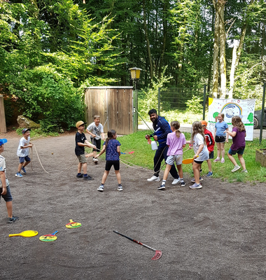 Montags wurden auf der „Homebase“ der Feuerwehrwiese die T-Shirts und das Banner der diesjährigen Freizeit gestaltet. Außerdem wurden bei Hockey, Fußball, Seilspringen und Stelzenlaufen neue Kontakte geknüpft.